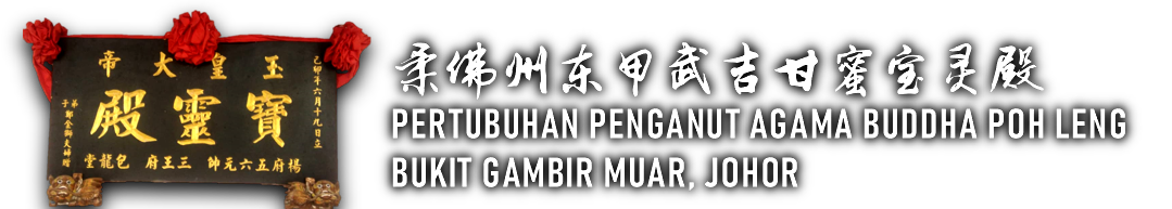 柔佛州东甲武吉甘蜜宝灵殿 PERTUBUHAN PENGANUT AGAMA BUDDHA POH LENG BUKIT GAMBIR MUAR, JOHOR 社团注册 : 1476 PTD 2240, PARIT LEBAN, 84800 BUKIT GAMBIR, TANGKAK, JOHOR.